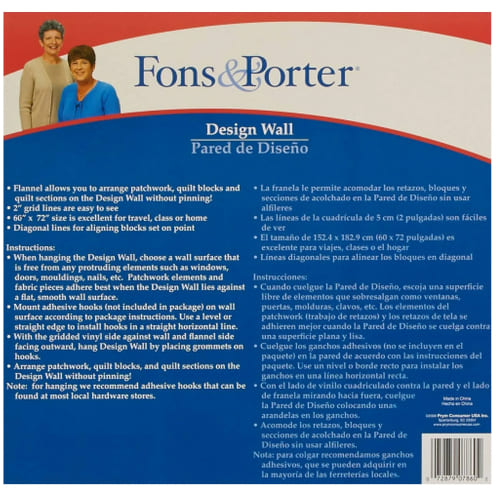 A practical tool for layout and planning: this flannel-backed design wall features a 60″ × 72″ section with grid lines and grommets for easy hanging.